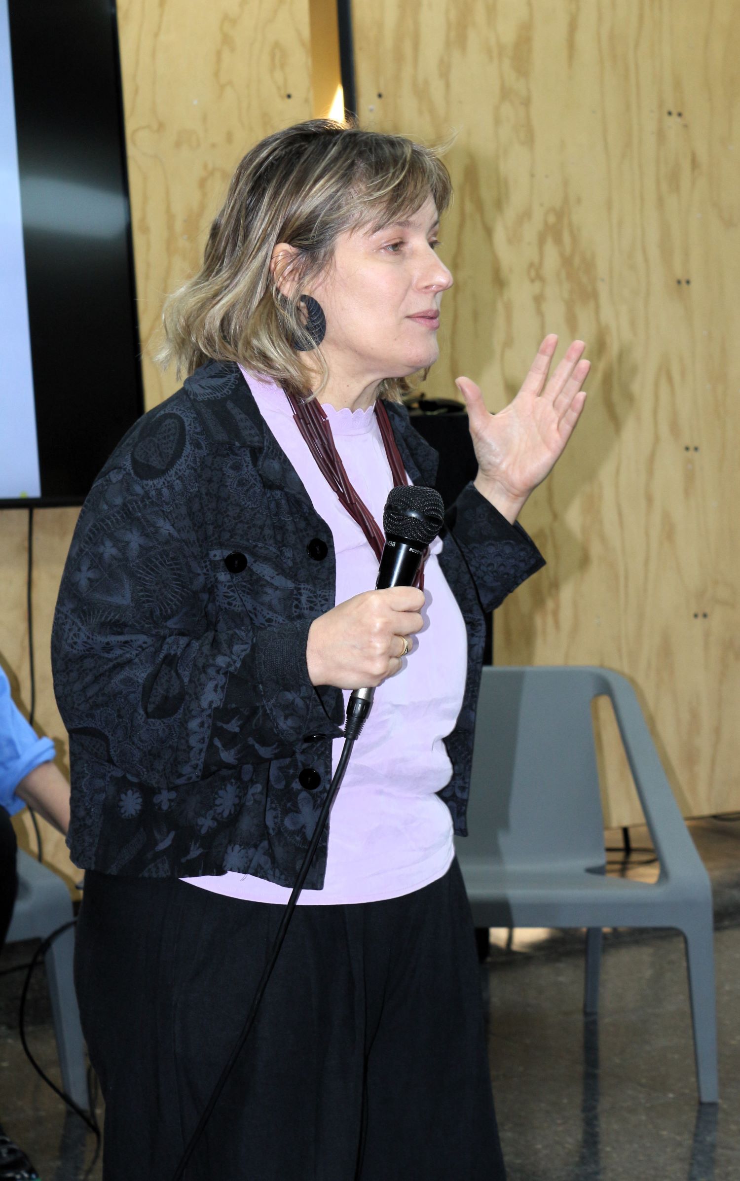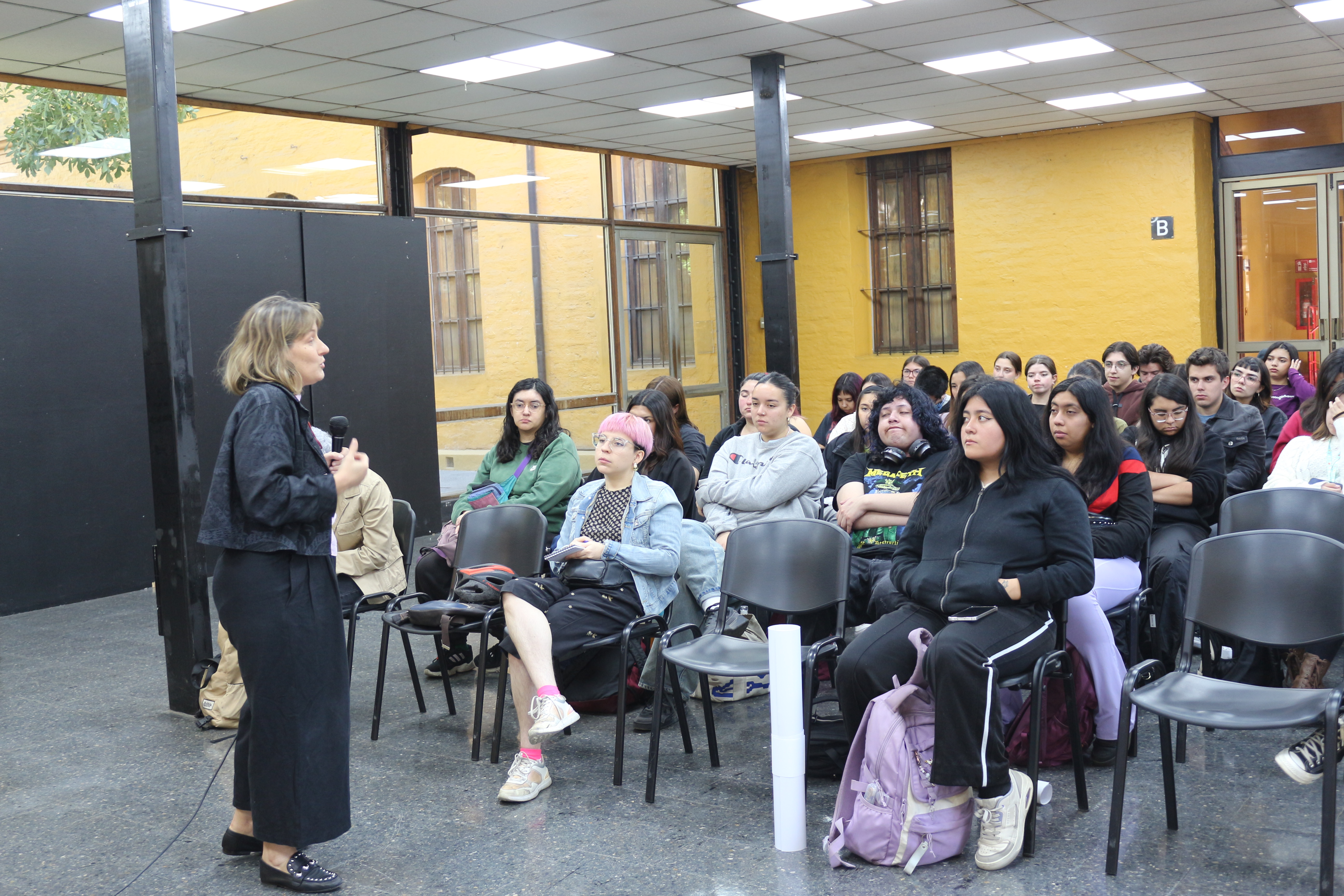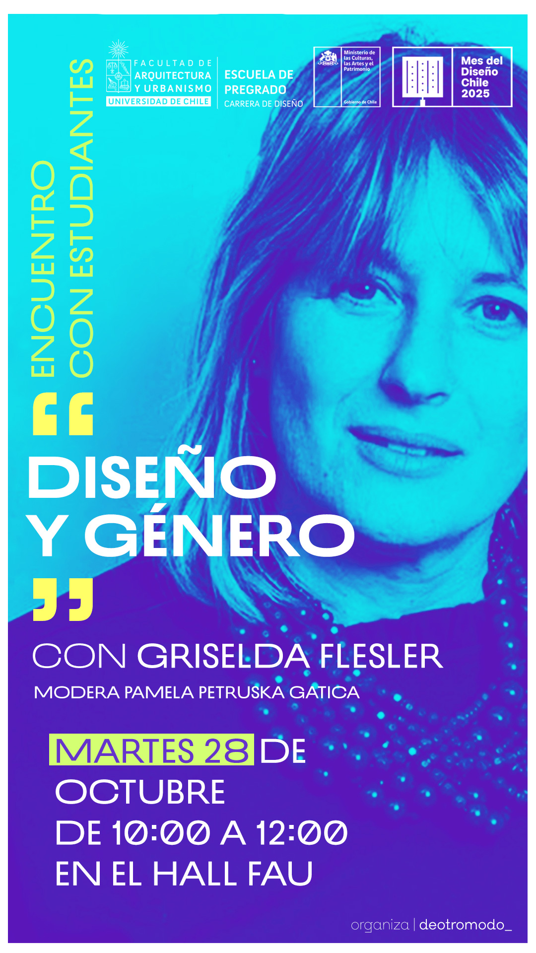 En un encuentro con académicas, académicos y estudiantes de primer y segundo año de la carrera de Diseño de la Facultad de Arquitectura y Urbanismo de la Universidad de Chile, la académica argentina Griselda Flesler, referente en los estudios sobre diseño y género, desarrolló una conversación abierta en la que abordó las relaciones entre estética, poder y cultura.