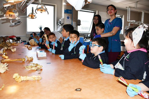 Transformada en un gran Laboratorio de asombro y aprendizaje, la Facultad de Odontología de la Universidad de Chile (FOUCh) recibió a las y los párvulos de la Escuela Especial de Lenguaje Semillita, de Recoleta, en el marco de su tradicional Semana de la Ciencia, entre el 20 y el 28 de octubre pasado. La jornada demostró que el interés por el conocimiento puede nacer a temprana edad, por lo que los niños y las niñas de kínder participaron en diversas actividades diseñadas para explicar conceptos complejos de manera sencilla, accesible y entretenida.