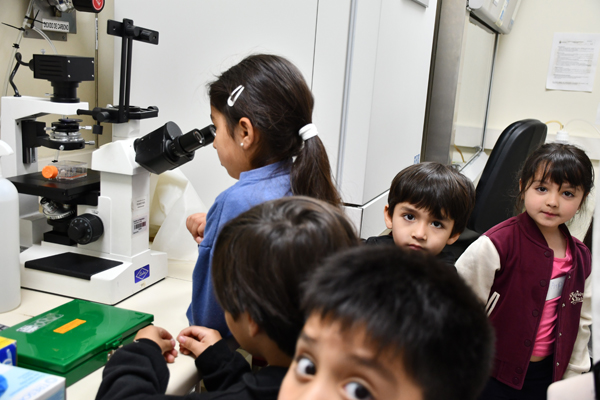 La T.M Rocío Orellana orientó el aprendizaje de niñas y niños que descubrieron el mundo que se logra observar a través de estos equipos altamente sofisticados, destinados a investigación de frontera.