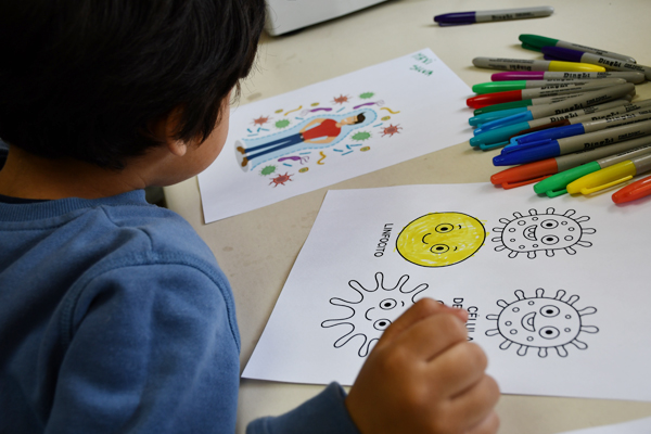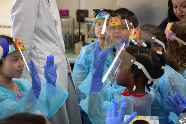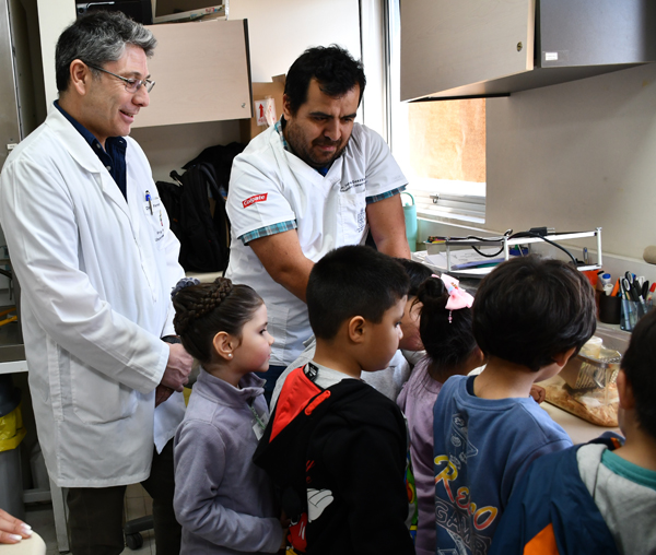 Durante la visita de las niñas y los niños a su Laboratorio, indicó el Dr. González, se abordó temáticas de salud integral, "les contamos de nuestras investigaciones, que estudiamos el sistema inmune, que son los mecanismos de defensa que tiene nuestro cuerpo contra los microrganismos, hablamos de la importancia de las vacunas, de la higiene bucal, del cepillado, de los cuidados para mantener la salud bucal, y de llevar una dieta saludable”.