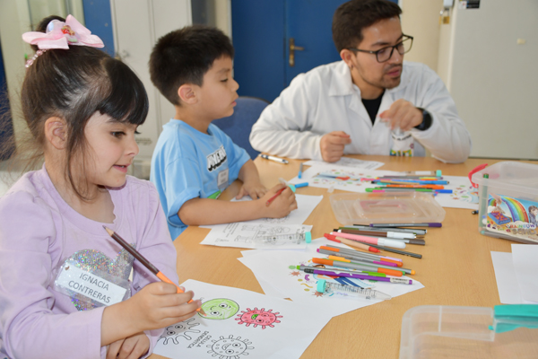 Asimismo, y atravesando un circuito de módulos científicos denominado “Nanopartículas en acción”, las visitas de la Escuela Especial de Lenguaje Semillita interactuaron con los académicos y estudiantes de Posgrado del Laboratorio de Nanobiomateriales, que encabeza el Dr. Cristian Covarrubias.  Decididos a convertirse en científicas y científicos por un día, las y los párvulos fueron testigos y protagonistas en experimentos, especialmente preparados, para sorprenderlos y activar sus preguntas y creatividad.