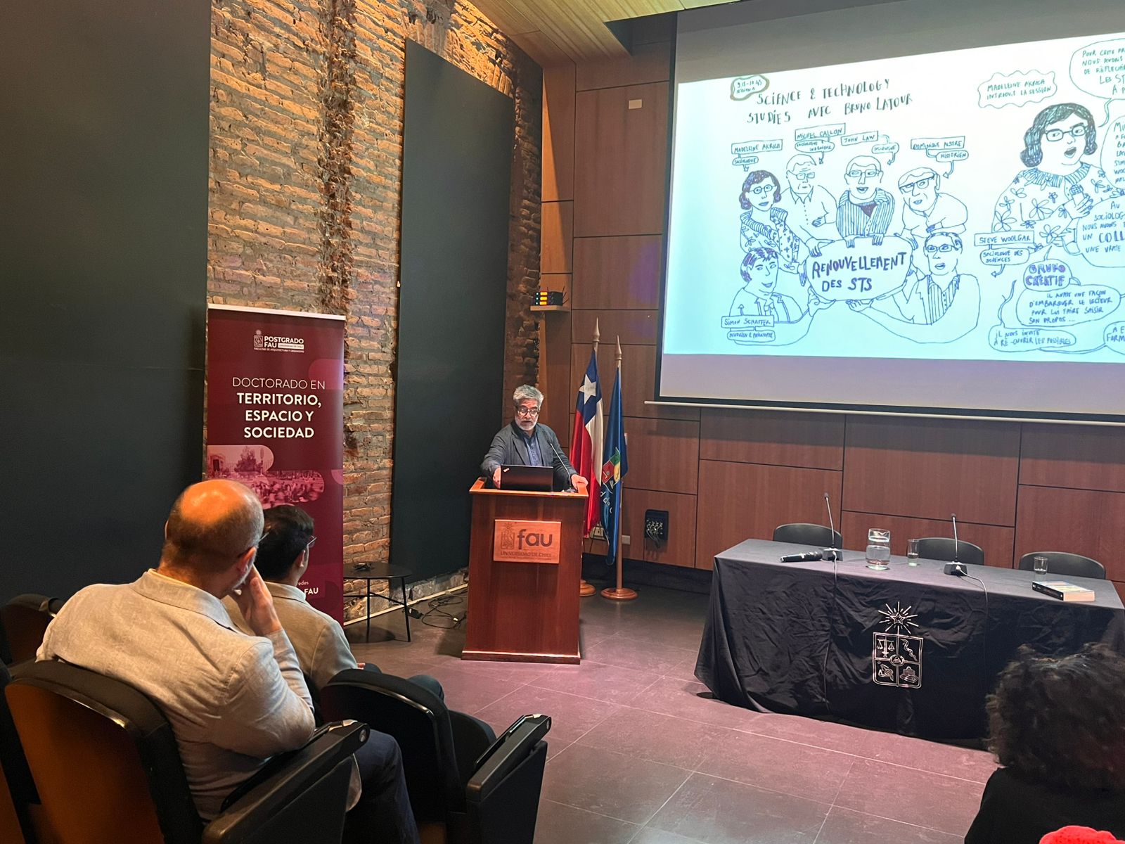 El académico del Departamento de Geografía y Coordinador del Doctorado, Prof. Miguel Contreras, quien abrió la jornada, destacó que el propósito del seminario fue “reimpulsar conversaciones de nivel doctoral que trasciendan el ámbito académico y convoquen a la comunidad universitaria en su conjunto”, enfatizando la necesidad de construir espacios de diálogo interdisciplinario entre territorio, espacio y sociedad. .jpeg)