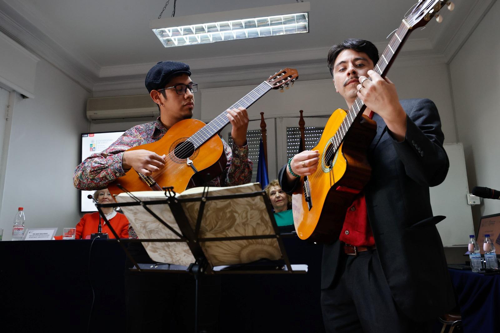 La jornada incluyó intervenciones musicales del dúo de guitarras Páez–Collío, con interpretaciones de “Valparaíso” del Gitano Rodríguez, y “Mocito que vas remando” de Rolando Alarcón.