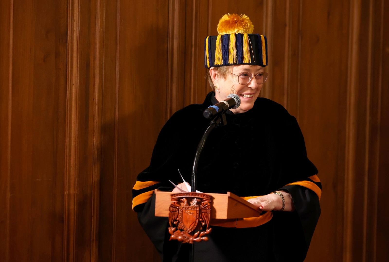 “El Doctorado Honoris Causa otorgado por la Universidad Nacional Autónoma de México a la expresidenta Michelle Bachelet, es un reconocimiento a su liderazgo y destacada trayectoria en la defensa de la democracia, los Derechos Humanos, la educación pública y la igualdad en su más amplio sentido. Su aporte ha sido decisivo para el desarrollo de América Latina, y su figura, vigente y ampliamente reconocida a nivel mundial, continúa siendo un referente para la construcción de sociedades más justas e inclusivas", dijo la Rectora Rosa Devés.