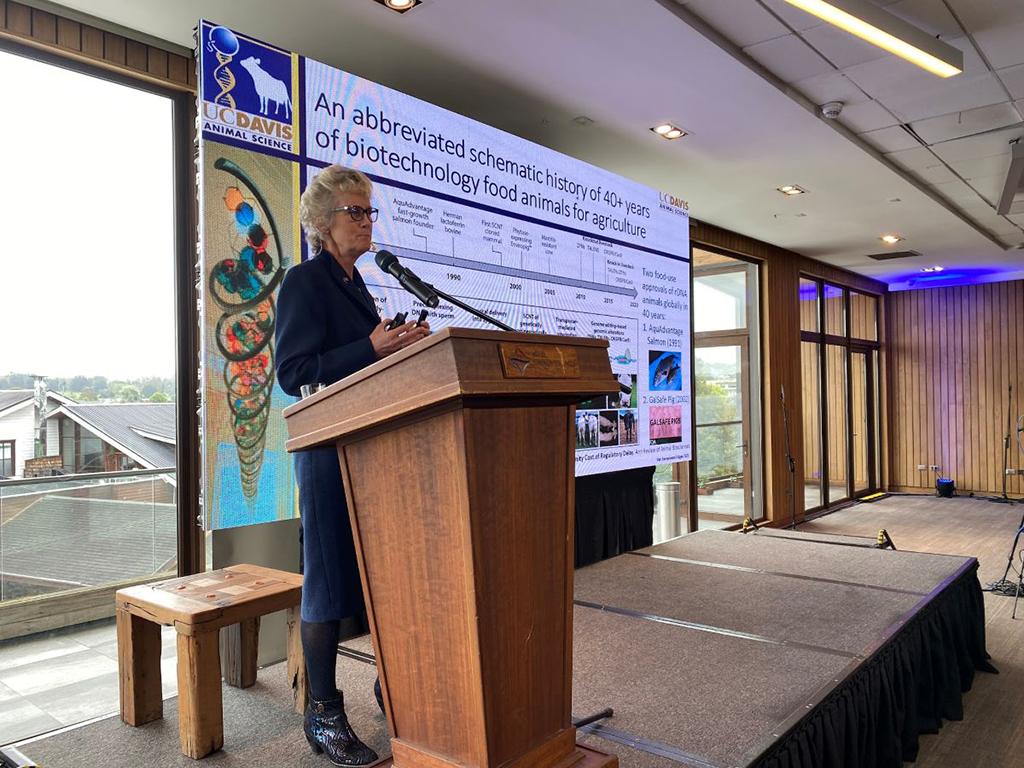 El seminario reunió especialistas de diferentes países con gran trayectoria en el estudio, desarrollo, innovación y tecnología de la edición genética. Una de las invitadas principales del encuentro fue Alison Van Eenennaam, profesora de la Universidad de California-Davis, Estados Unidos, cuya investigación y divulgación se centra en el uso y la regulación de la genómica y la biotecnología animal en los sistemas de producción animal, así como en el desarrollo de métodos de edición genómica para ganado vacuno y ovino.