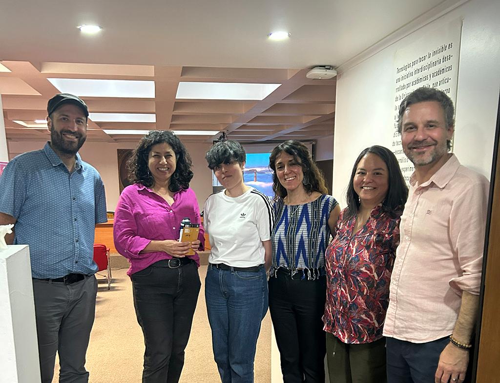 Equipo académico del proyecto interdisciplinario de las facultades de Artes y de Ciencias Sociales, junto a investigadoras invitadas, durante el conversatorio.