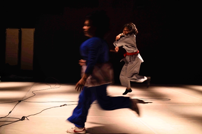 Lo he activado en femenino porque siempre en los elencos somos más mujeres. Y cuando somos más mujeres hablo en femenino. En un momento estuve pensando por qué el “yo no soy” y concluí que para mí era relevante el “yo” en ese momento y, aunque sigue siendo relevante -porque es bien distinto decir “yo no soy” a “nosotros no somos”-, en este proceso he querido ir hacia allí. Además, estoy yendo más hacia el cuerpo de una manera más danzante. Antes los cuerpos y la danza estaban, aunque algunas pueden decir “esto no es danza”, pero sí hay una danza y es totalmente coreográfico. Los tiempos, el uso del espacio, los cables, los micrófonos, todo está en movimiento. Pero en “Polifonía” quiero volver un poco más al cuerpo danzante, ir yendo hacia ahí, atravesado por ese discurso pero también con autonomía.