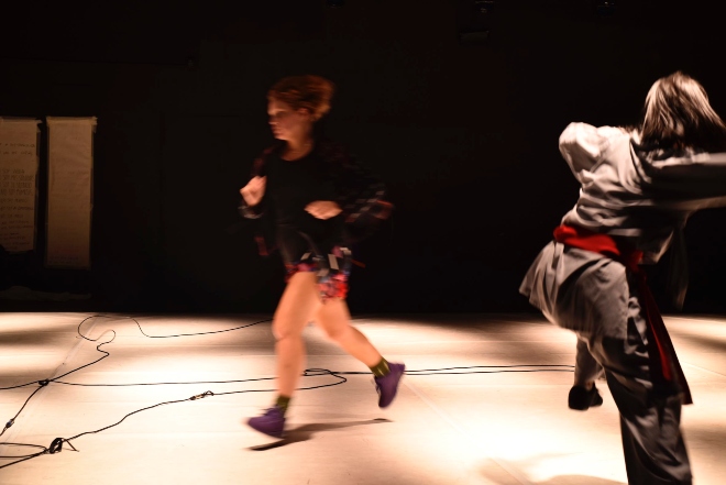 Vino “Maraña”, que la activamos un par de veces. Y en “Bordeando lo imposible”, cuando estaba trabajando sobre la insistencia, el fracaso y las tareas imposibles, también puse la maraña. Es decir, primero fue una acción en sí misma que generaba un mundo, una escena dentro de la obra, después migró y se intensificó en “Maraña” y luego estuvo presente en “Bordeando lo imposible”. Y bueno, ahí me di cuenta de que estaba concatenando, agarrando un pedacito de la obra anterior como semillita en la siguiente obra.