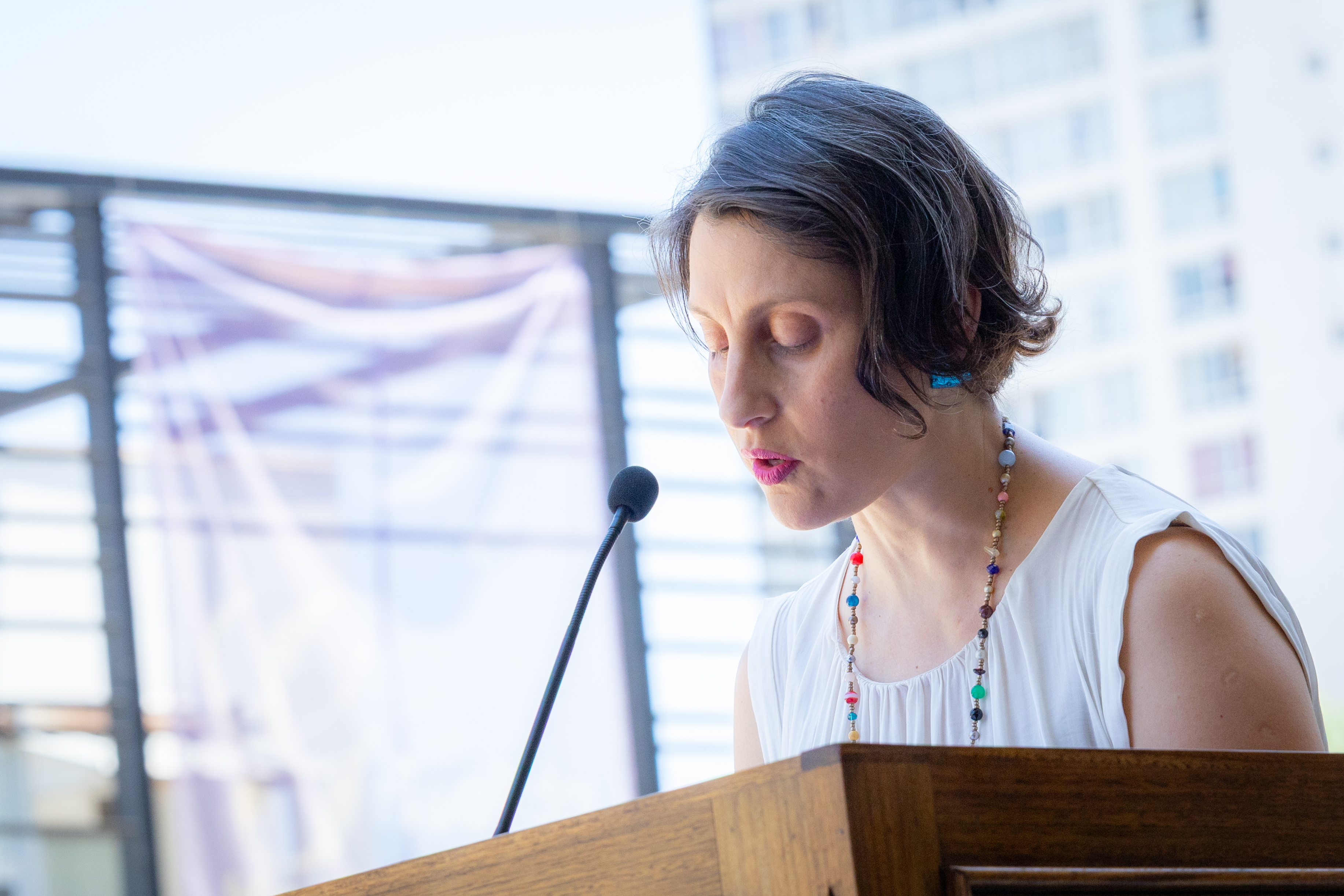 El decano Pablo Richter se acercó al podio y se dirigió a las y los asistentes con un discurso cargado de emoción, en el que evocó la memoria y el legado de Ghigliotto, permitiendo que sus descendientes escucharan, a través de sus palabras, el reconocimiento a su historia y trascendencia.
