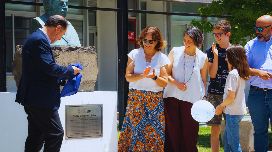El acto de develación de la placa en homenaje al profesor Carlos Ghigliotto del pasado jueves 18 de diciembre, contó con la presencia del decano Prof. Pablo Richter, la vicedecana Prof. Paz Robert, el director de Relaciones Internacionales Prof. Christian Wilson, la subdirectora de Extensión y Vinculación, Betsabet Sepúlveda, además de académicos, estudiantes y personal de colaboración de la Facultad. Asimismo, se destacó la participación de Giselle y Braulio Luksic Ghigliotto, bisnietos en tercer grado del profesor Ghigliotto, quienes acompañaron este significativo homenaje, fortaleciendo el vínculo entre la memoria institucional y la historia familiar del académico.