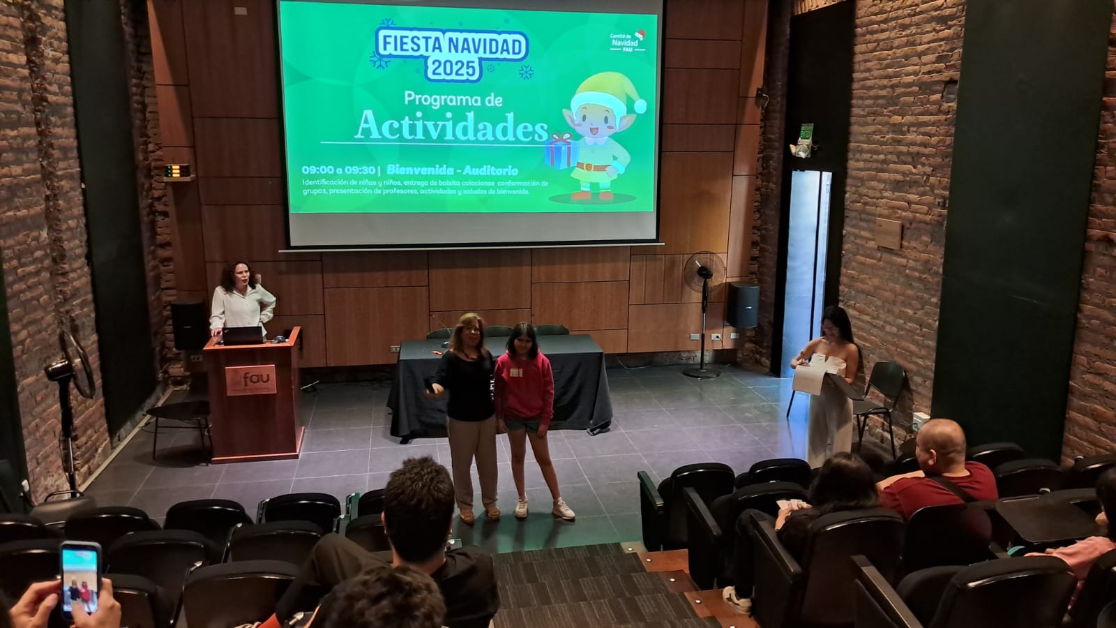 De esta manera, y como ya es tradición, el Comité de Navidad FAU, junto a toda la comunidad de la Facultad, organizó una jornada que permitió a madres, padres,e hijas e hijos compartir el espacio laboral, transformándolo por un día en un lugar de encuentro, celebración y espíritu navideño.