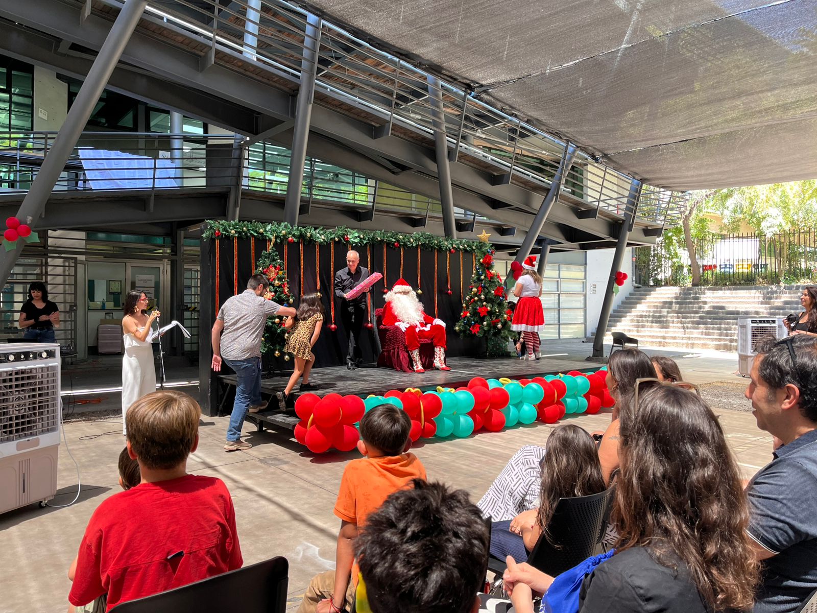 Al mediodía, la comunidad FAU compartió un almuerzo, generando un espacio de convivencia entre familias, funcionarias y funcionarios. Más tarde, la jornada culminó con la esperada llegada del Viejito Pascuero, quien, junto al Decano Manuel Amaya, realizó la entrega de regalos a las y los asistentes.
