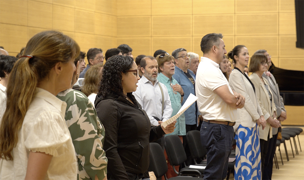 También citó las palabras de Mario Baeza, director fundador del Coro Sinfónico, contenidas en el libro “Mario Baeza Gajardo. Músico y gestor cultural del siglo XX”, de Ana Carolina Reynaldos, Grete Bussenius y Álvaro Hoppe. En él, el maestro describió la misión del Coro como la de “llevar el canto a todas las clases sociales, a todos los rincones, en conciertos públicos, en locales cerrados, o al aire libre”. “Siento que ese espíritu es también lo que son ustedes”, agregó la rectora Devés.