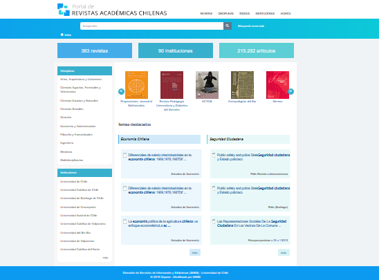 Permite acceder a todos los recursos de información disponibles en la Universidad de Chile: catálogo de bibliotecas y archivos, repositorio institucional, tesis, revistas, libros, bases de datos suscritas y colección de objetos digitales. - Revistas electrónicas A-Z