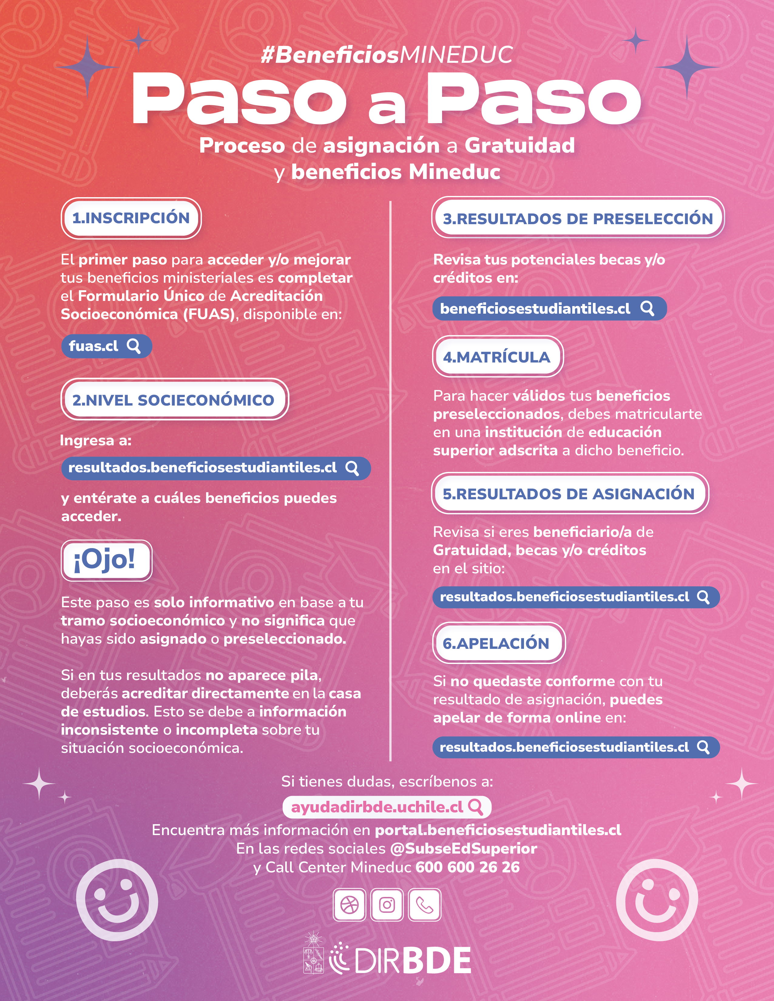 📩 Más información en uchile.cl/u5073. Si tienes dudas, ingresa tu consulta a través de la Mesa de Ayuda DIRBDE o revisa las preguntas frecuentes en el mismo sitio.