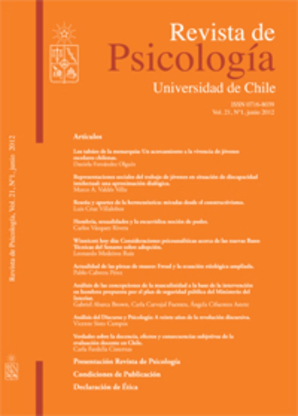 Diversos artículos que abordan temas de interés social, escritos por destacados profesionales, uno de ellos profesor del Departamento, Pablo Cabrera, contiene el primer número del año 2012 de la Revista de Psicología, que el Departamento de Psicología de la Facultad de Ciencias Sociales de la Universidad de Chile edita desde hace más de dos décadas.